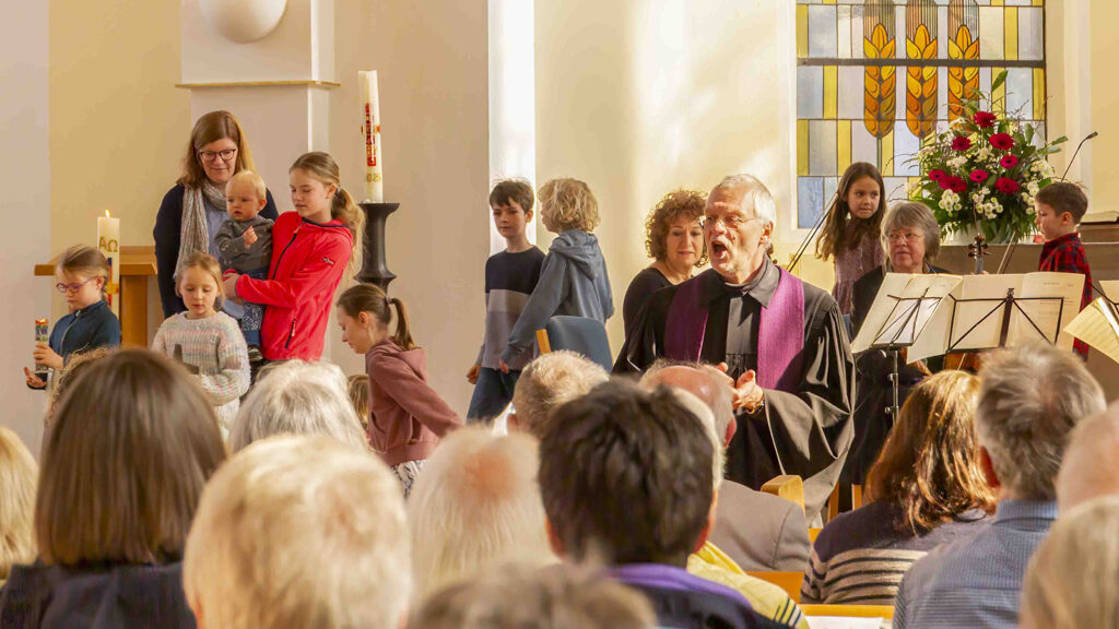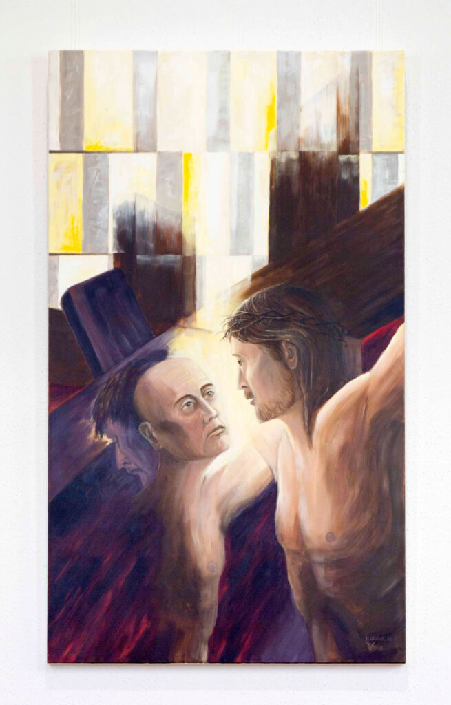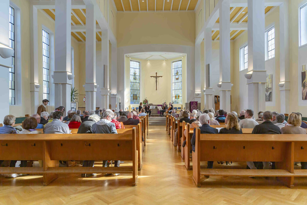 Unter dem Titel „Kreuzes Hoffnung“ eröffnete am 22. März 2026 in unserer Kirche eine Dauerausstellung mit Arbeiten des Künstlers Herbert Grawe. Die Werke (jeweils Acryl auf Leinwand, 110 × 190 cm) treten dabei in einen besonderen Dialog mit dem Kirchenraum und mit der Musik.